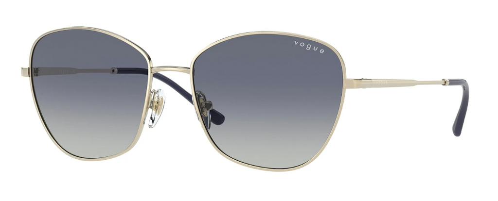 Experience the epitome of style with Vogue Eyewear VO4232S, a must-have addition to your accessories collection. These butterfly-shaped sunglasses, featuring metal frame construction and pale gold color, exude sophistication and elegance. The grey gradient dark blue lenses provide optimal protection from harmful UV rays while adding an extra touch of...