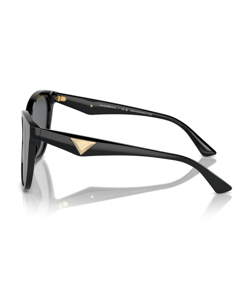 Discover Emporio Armani EA4222U, a new generation of sunglasses that combines style and sophistication. Crafted in shiny black color with grey lenses, this unique cat eye design features an iconic gold eagle on the temples for an unmistakable touch of elegance. Elevate your everyday look with these captivating shades that...