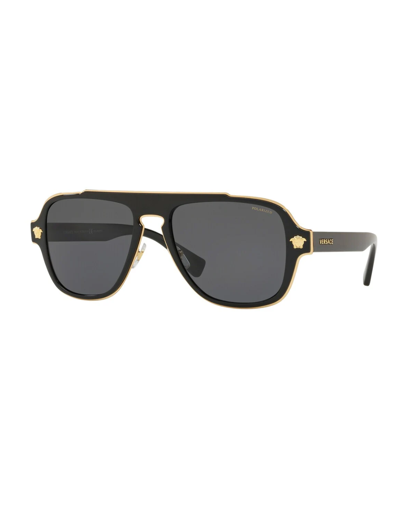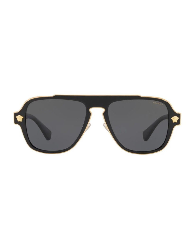 Striking yet clean-cut, this avant-garde Versace frame for him embodies the street smart look. Dense color layers, rich metal profiles and the brand's iconic Medusa make these shades the ultimate style for the on-trend, modern man.